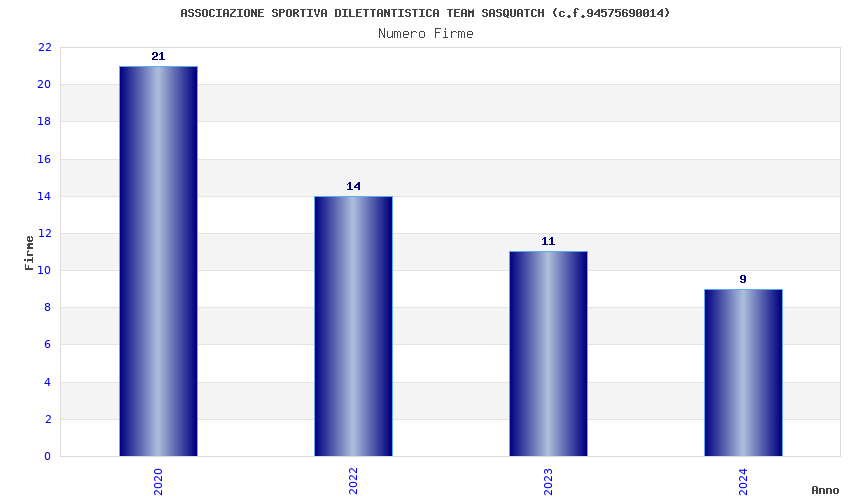 | Anno | Firme | Importi | Media | Naz. | Reg. | Prov. | Comu. |