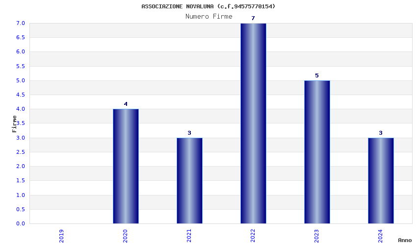 | Anno | Firme | Importi | Media | Naz. | Reg. | Prov. | Comu. |