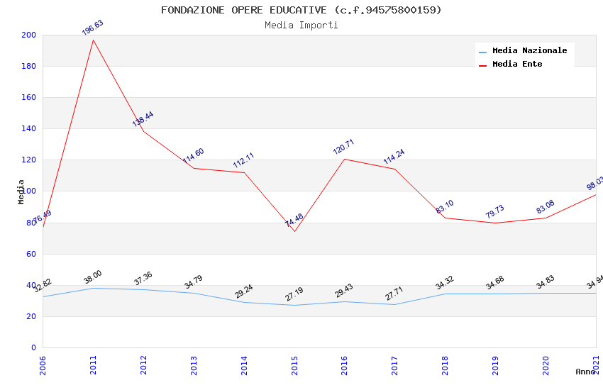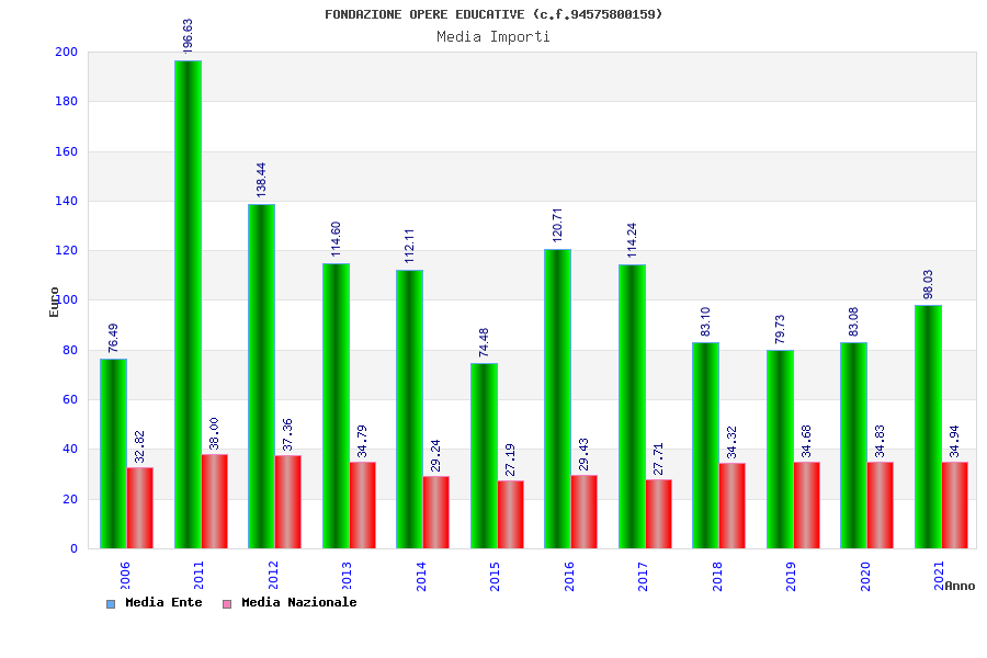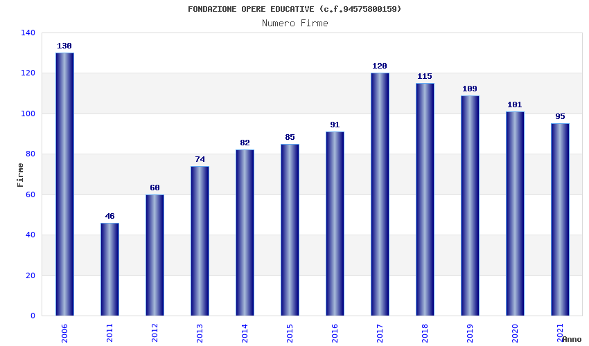 | Anno | Firme | Importi | Media | Naz. | Reg. | Prov. | Comu. |
