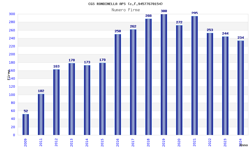 | 2019 | 300 | 12.696,51 | 42,32 | 3.879 | 980 | 503 | 7 |