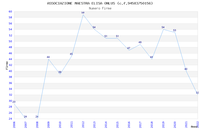 | Anno | Firme | Importi | Media | Naz. | Reg. | Prov. | Comu. |