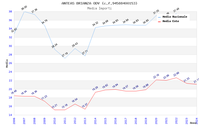 | Anno | Firme | Importi | Media | Naz. | Reg. | Prov. | Comu. |