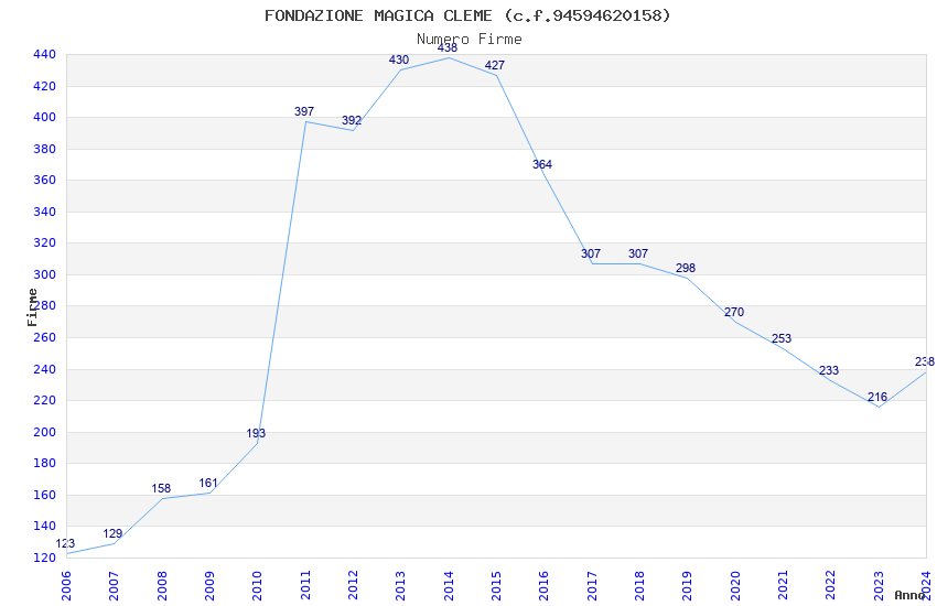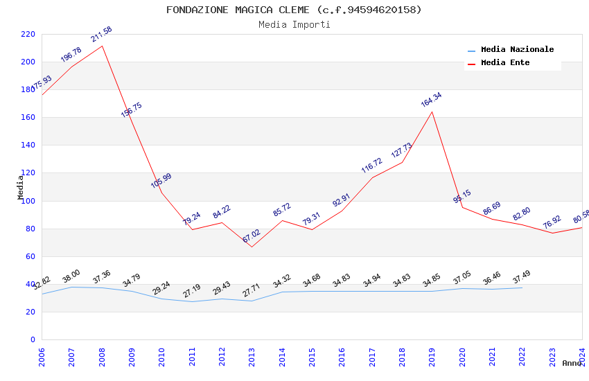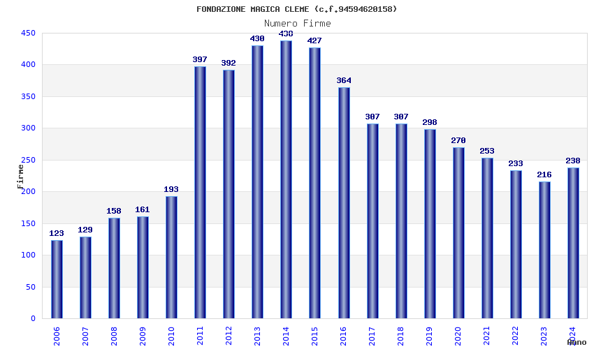 | Anno | Firme | Importi | Media | Naz. | Reg. | Prov. | Comu. |