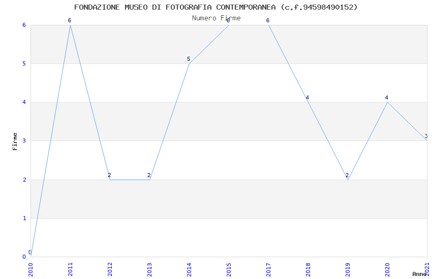 | Anno | Firme | Importi | Media | Naz. | Reg. | Prov. | Comu. |