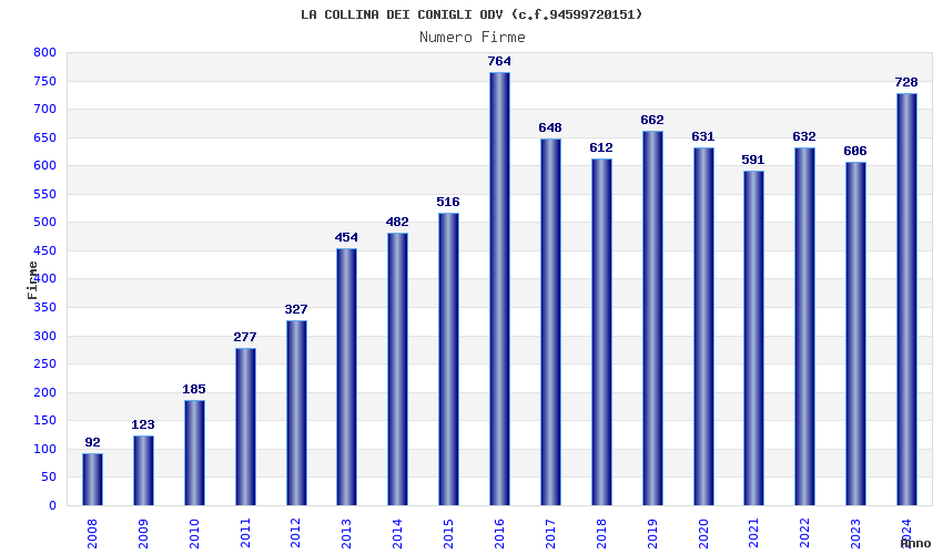 | 2016 | 764 | 19.896,10 | 26,04 | 2.197 | 552 | 41 | 15 |