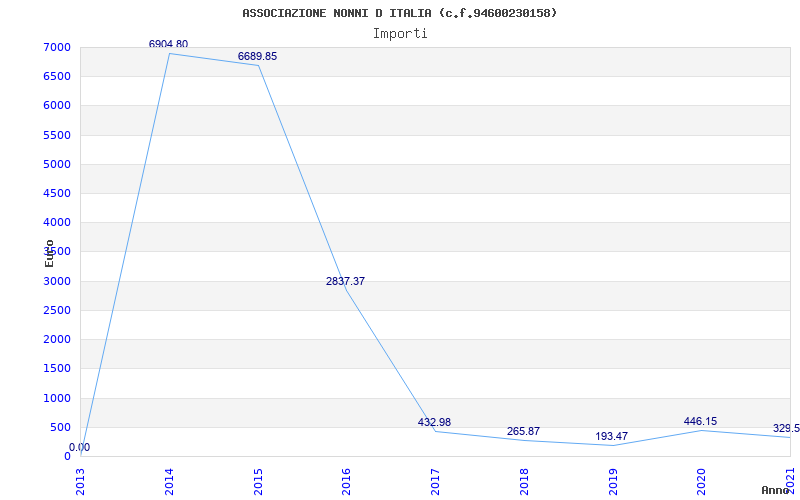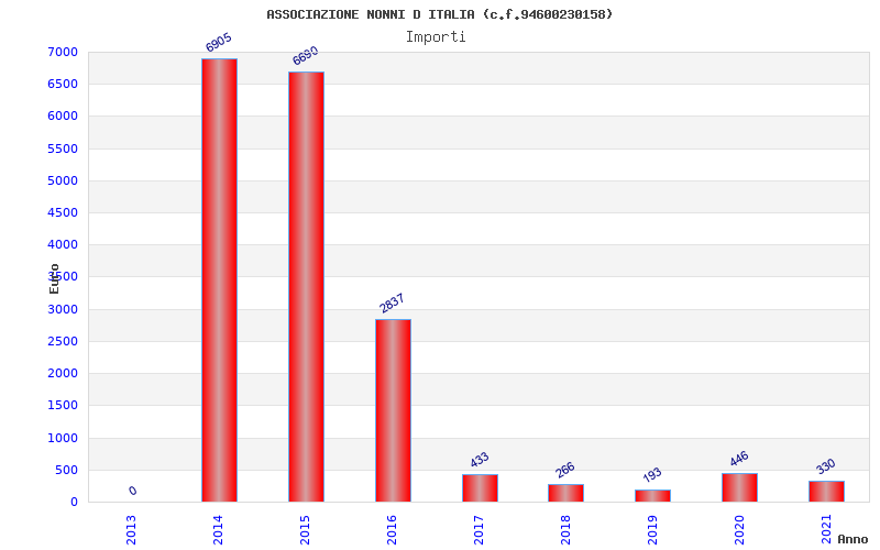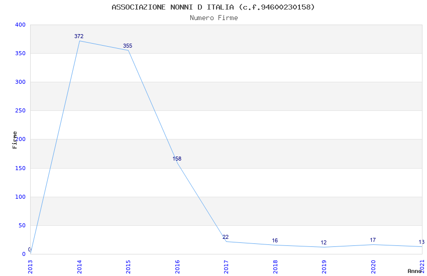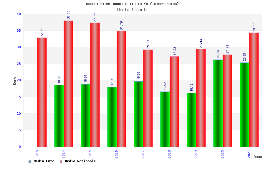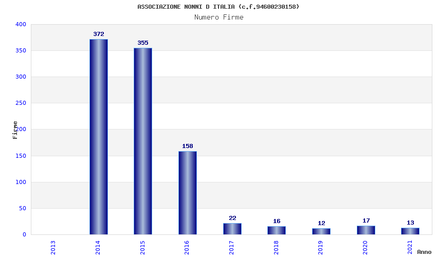 | Anno | Firme | Importi | Media | Naz. | Reg. | Prov. | Comu. |