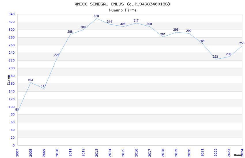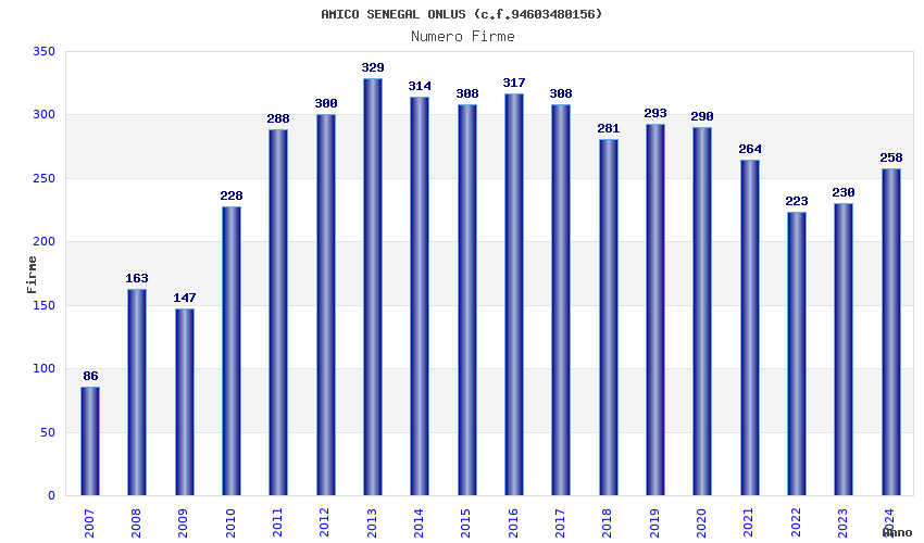 | Anno | Firme | Importi | Media | Naz. | Reg. | Prov. | Comu. |