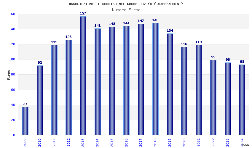 | Anno | Firme | Importi | Media | Naz. | Reg. | Prov. | Comu. |