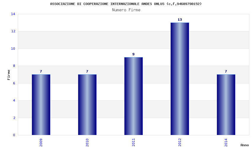 | Anno | Firme | Importi | Media | Naz. | Reg. | Prov. | Comu. |