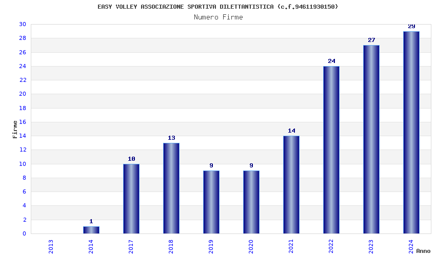 | Anno | Firme | Importi | Media | Naz. | Reg. | Prov. | Comu. |