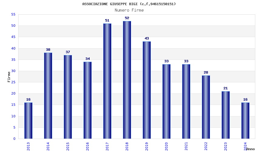 | Anno | Firme | Importi | Media | Naz. | Reg. | Prov. | Comu. |