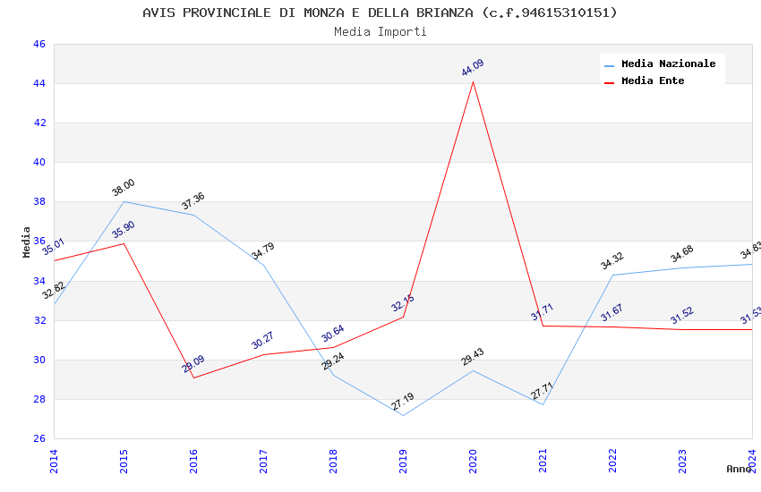 | Anno | Firme | Importi | Media | Naz. | Reg. | Prov. | Comu. |