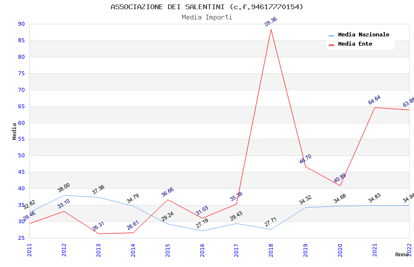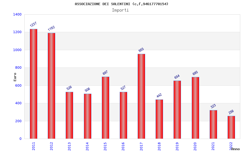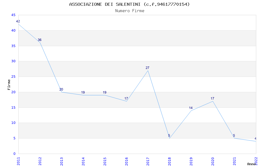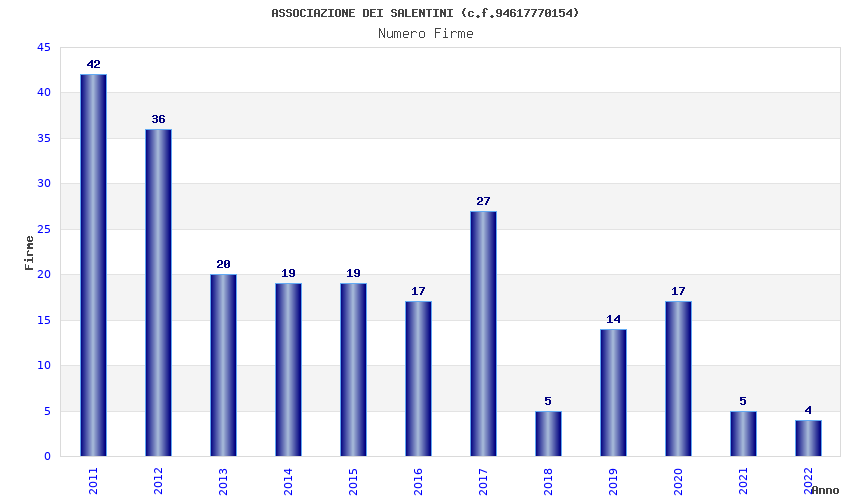 | Anno | Firme | Importi | Media | Naz. | Reg. | Prov. | Comu. |