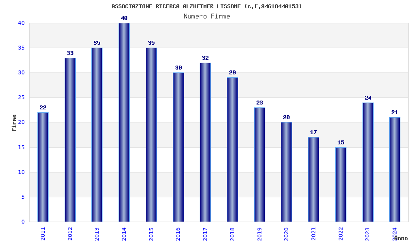 | Anno | Firme | Importi | Media | Naz. | Reg. | Prov. | Comu. |