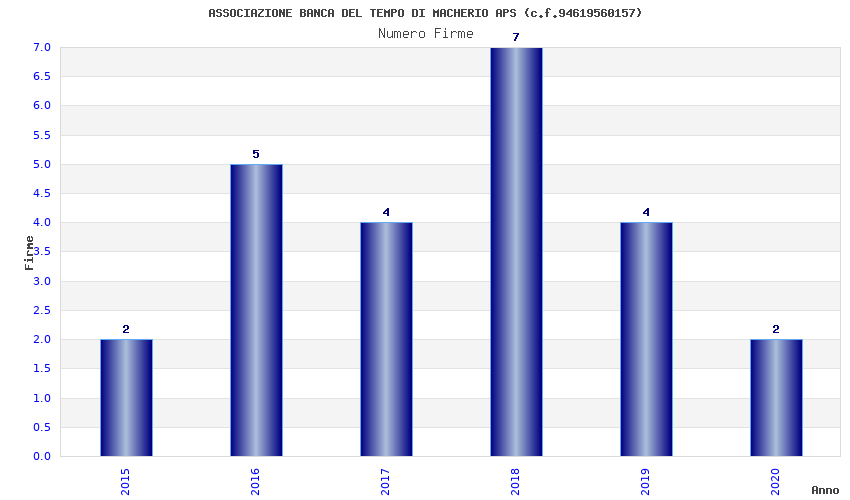 | Anno | Firme | Importi | Media | Naz. | Reg. | Prov. | Comu. |
