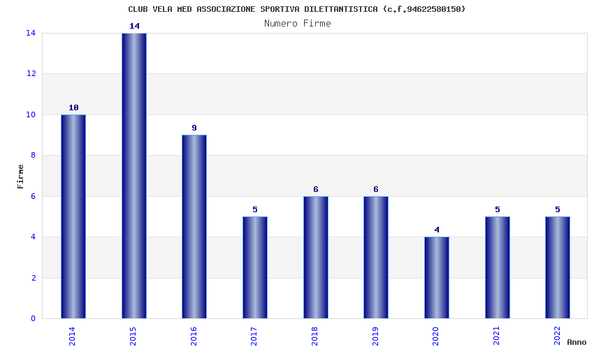| Anno | Firme | Importi | Media | Naz. | Reg. | Prov. | Comu. |
