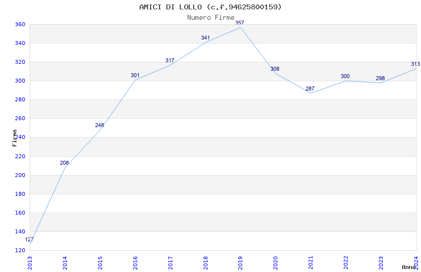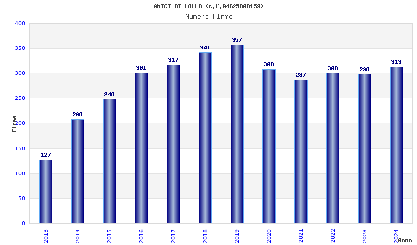 | Anno | Firme | Importi | Media | Naz. | Reg. | Prov. | Comu. |