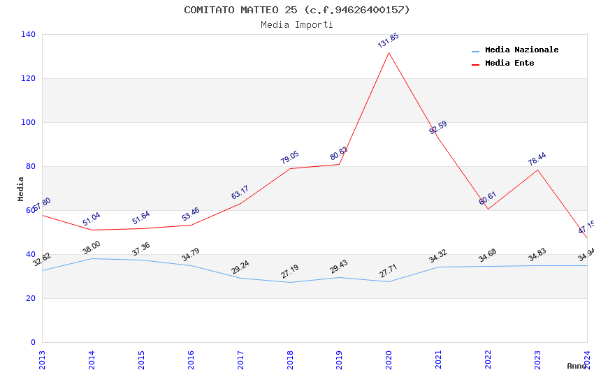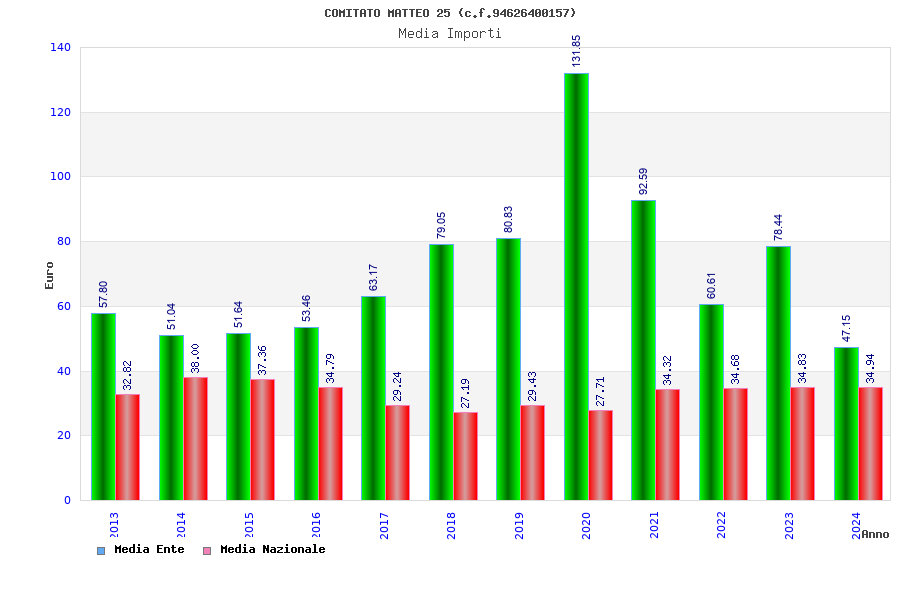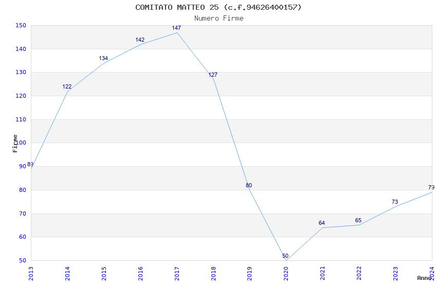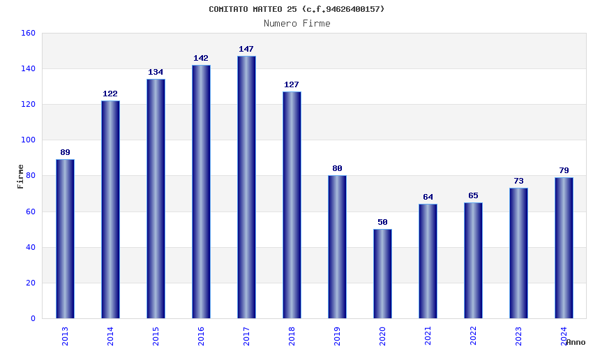 | Anno | Firme | Importi | Media | Naz. | Reg. | Prov. | Comu. |