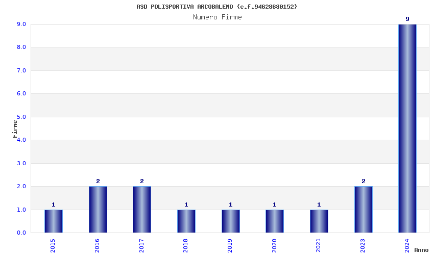 | Anno | Firme | Importi | Media | Naz. | Reg. | Prov. | Comu. |