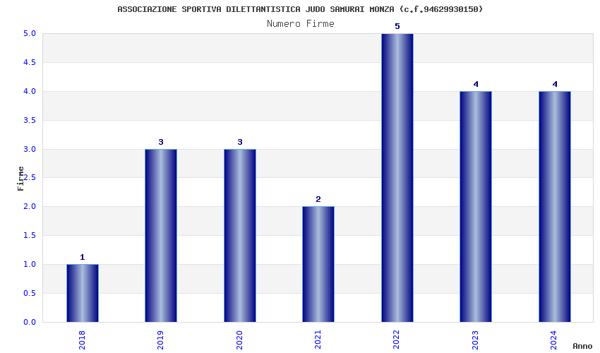 | Anno | Firme | Importi | Media | Naz. | Reg. | Prov. | Comu. |