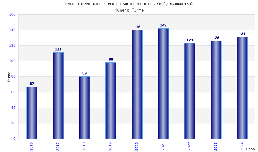 | Anno | Firme | Importi | Media | Naz. | Reg. | Prov. | Comu. |