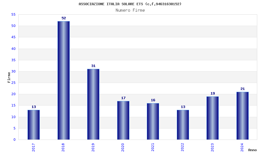 | Anno | Firme | Importi | Media | Naz. | Reg. | Prov. | Comu. |