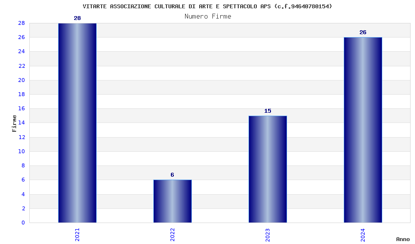 | Anno | Firme | Importi | Media | Naz. | Reg. | Prov. | Comu. |