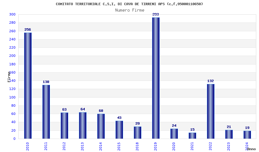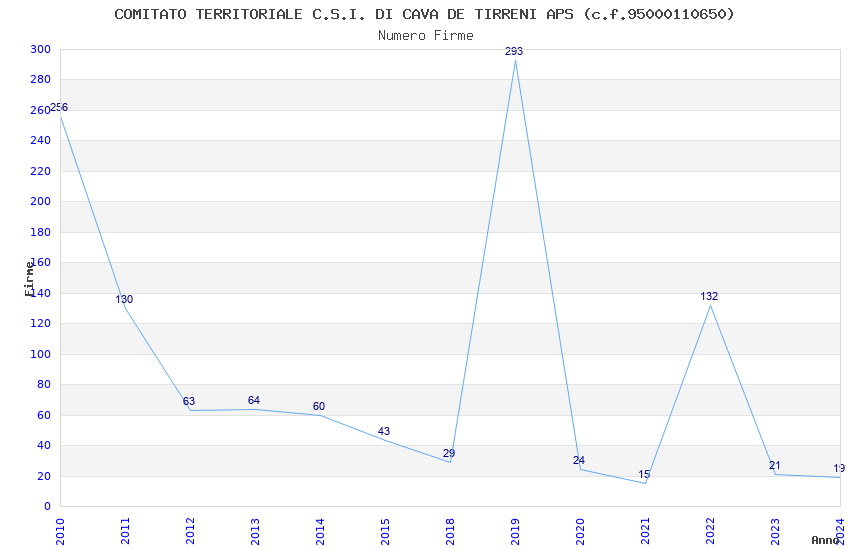 | 2019 | 293 | 4.320,65 | 14,75 | 12.817 | 784 | 164 | 19 |