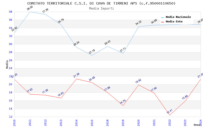 | Anno | Firme | Importi | Media | Naz. | Reg. | Prov. | Comu. |