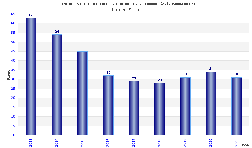 | Anno | Firme | Importi | Media | Naz. | Reg. | Prov. | Comu. |