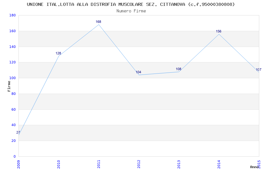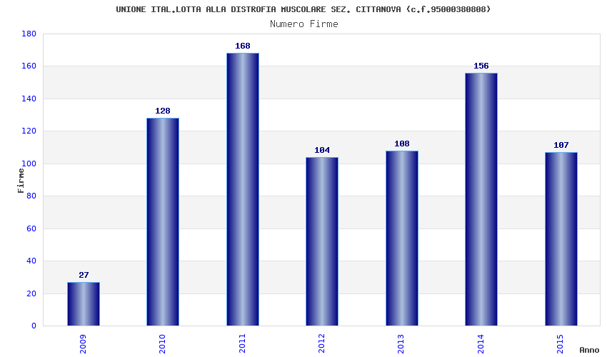 | Anno | Firme | Importi | Media | Naz. | Reg. | Prov. | Comu. |