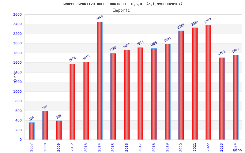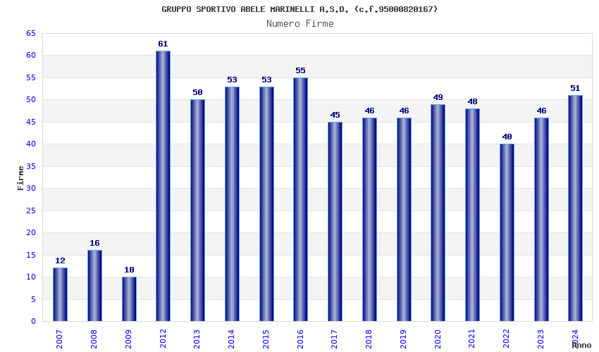 | Anno | Firme | Importi | Media | Naz. | Reg. | Prov. | Comu. |