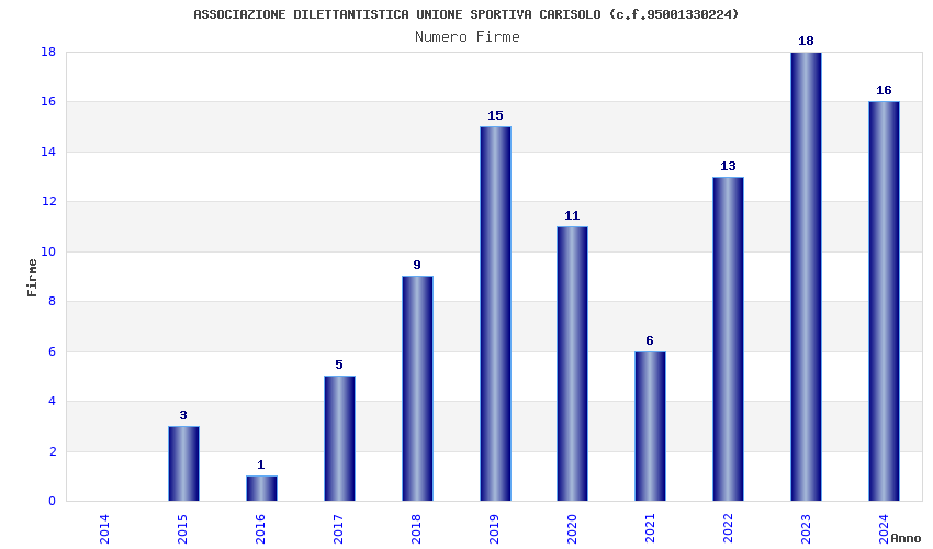| Anno | Firme | Importi | Media | Naz. | Reg. | Prov. | Comu. |