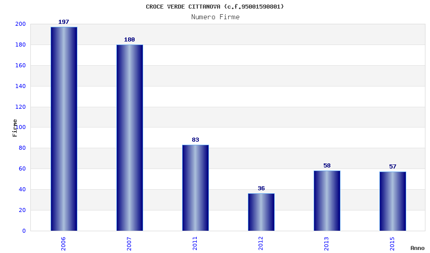 | Anno | Firme | Importi | Media | Naz. | Reg. | Prov. | Comu. |
