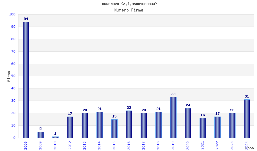 | Anno | Firme | Importi | Media | Naz. | Reg. | Prov. | Comu. |