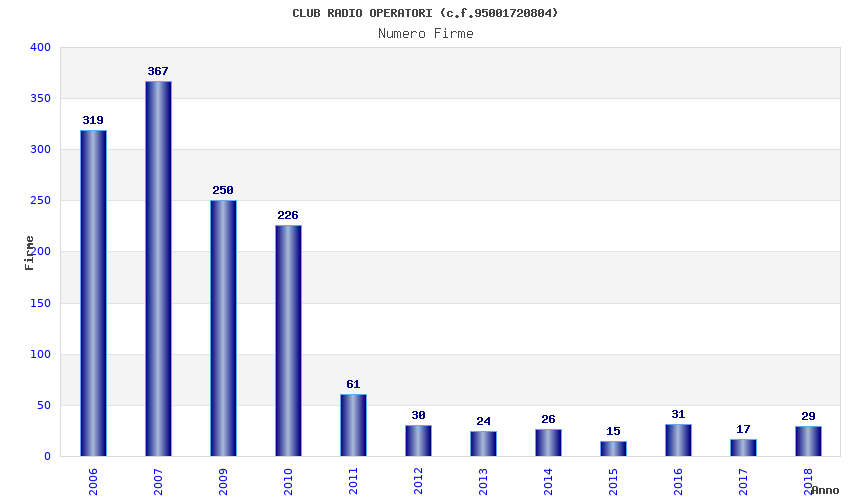 | Anno | Firme | Importi | Media | Naz. | Reg. | Prov. | Comu. |
