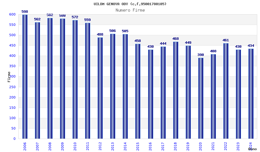 | Anno | Firme | Importi | Media | Naz. | Reg. | Prov. | Comu. |