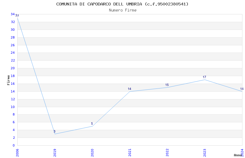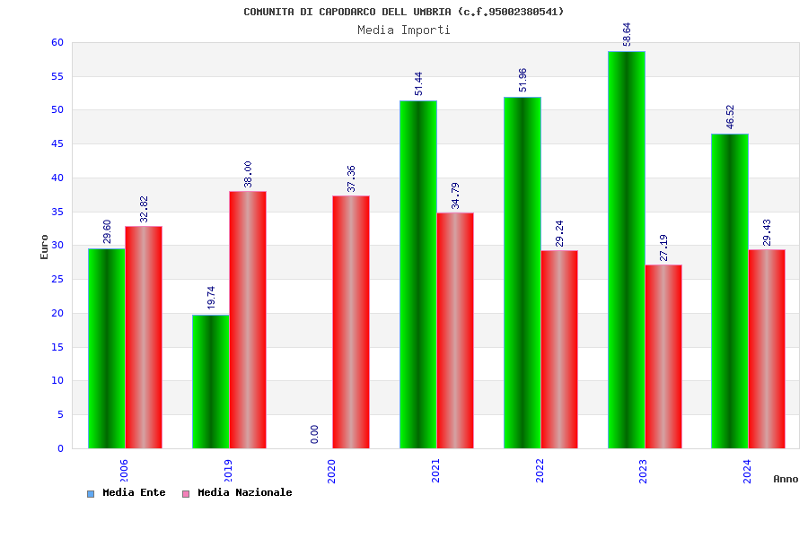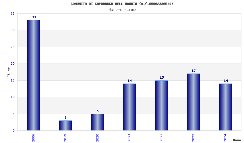 | Anno | Firme | Importi | Media | Naz. | Reg. | Prov. | Comu. |