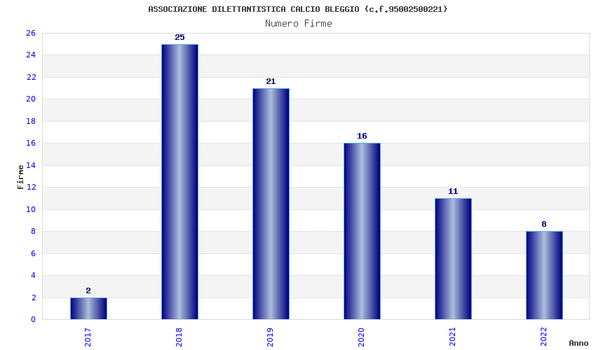 | Anno | Firme | Importi | Media | Naz. | Reg. | Prov. | Comu. |