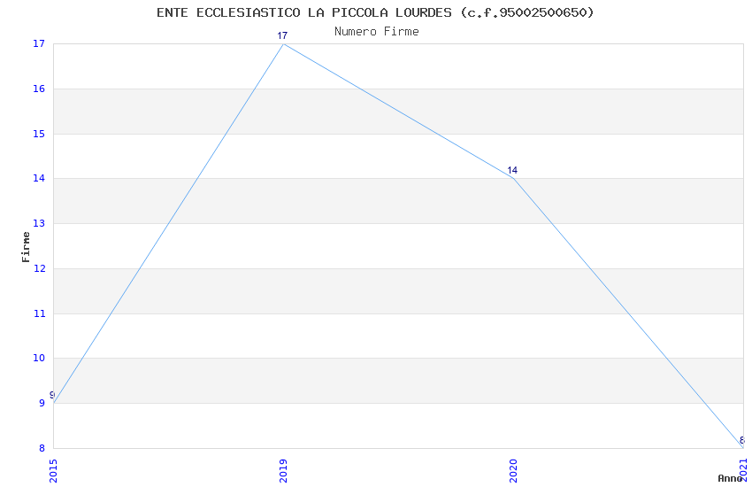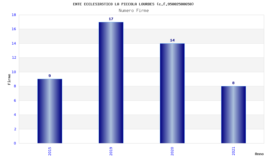 | Anno | Firme | Importi | Media | Naz. | Reg. | Prov. | Comu. |