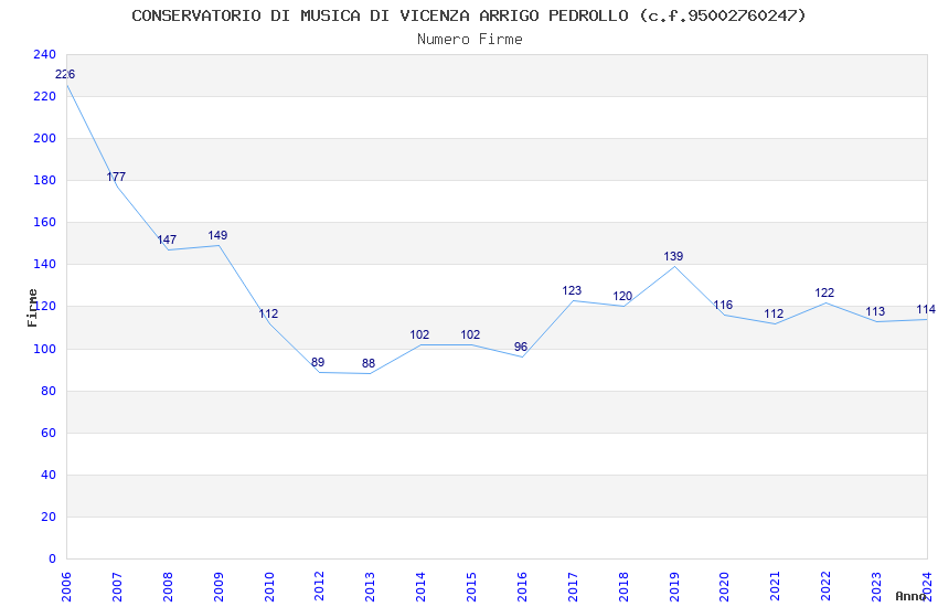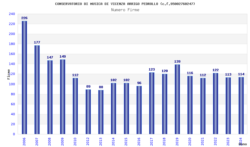 | Anno | Firme | Importi | Media | Naz. | Reg. | Prov. | Comu. |