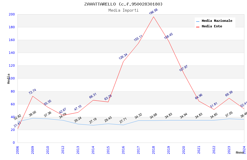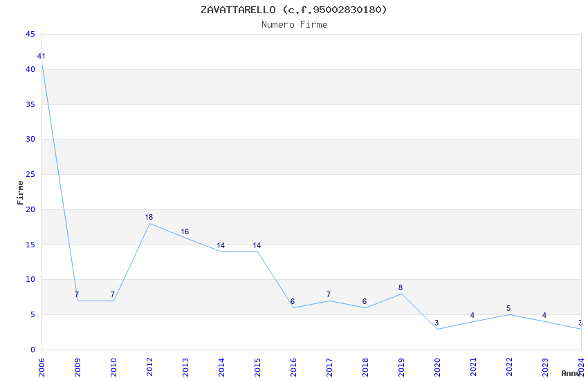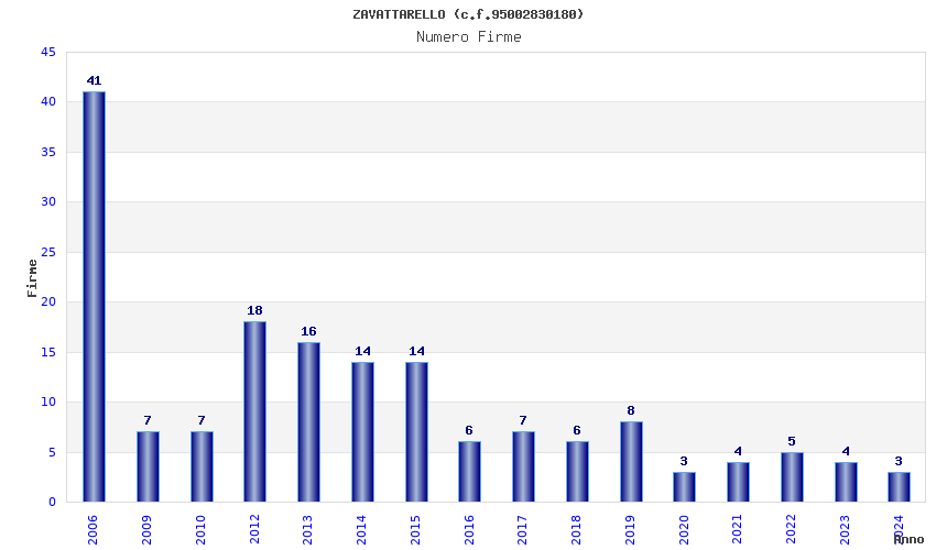 | Anno | Firme | Importi | Media | Naz. | Reg. | Prov. | Comu. |