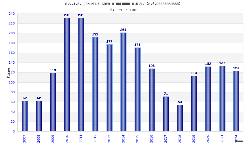 | 2010 | 231 | 2.759,64 | 11,95 | 13.414 | 807 | 119 | 3 |