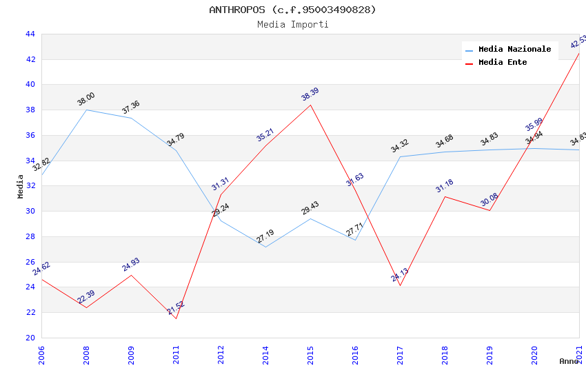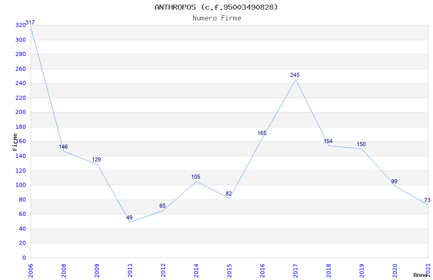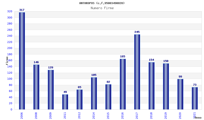 | Anno | Firme | Importi | Media | Naz. | Reg. | Prov. | Comu. |