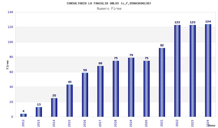 | Anno | Firme | Importi | Media | Naz. | Reg. | Prov. | Comu. |