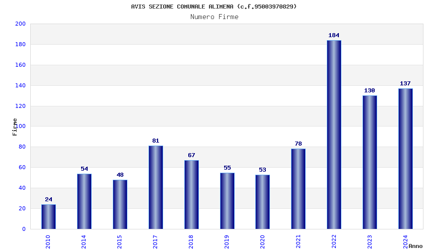 Anno Firme Importi Media Naz. Reg. Prov. Comu.