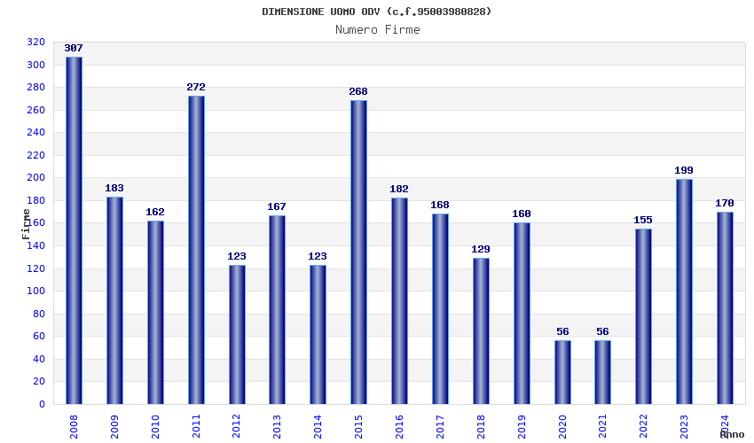 | Anno | Firme | Importi | Media | Naz. | Reg. | Prov. | Comu. |