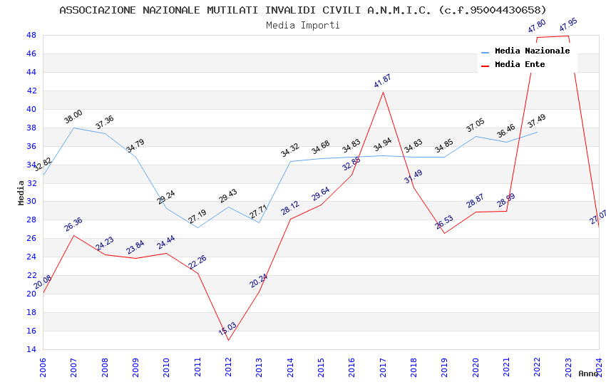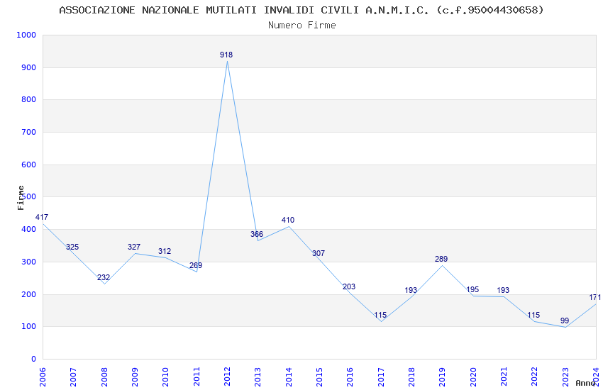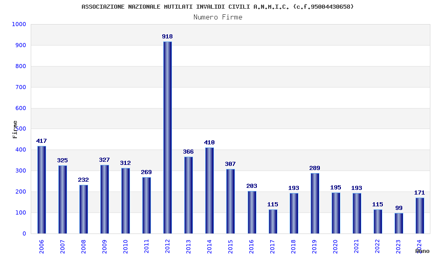| Anno | Firme | Importi | Media | Naz. | Reg. | Prov. | Comu. |