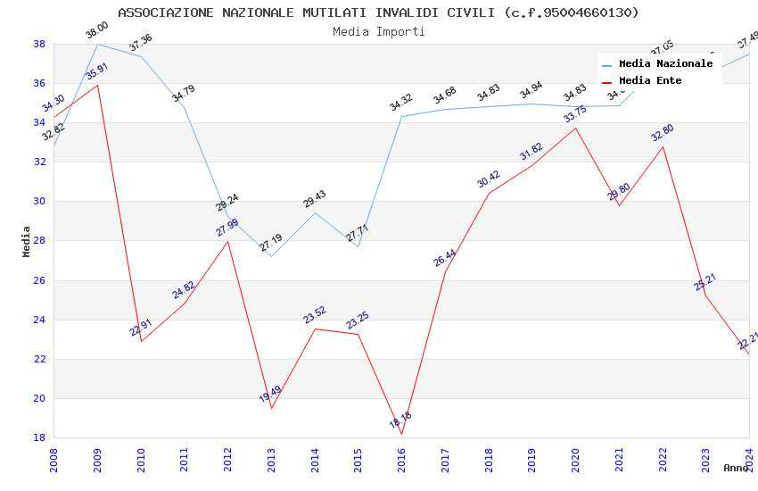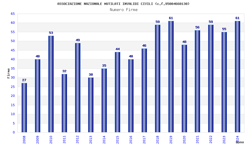 | Anno | Firme | Importi | Media | Naz. | Reg. | Prov. | Comu. |