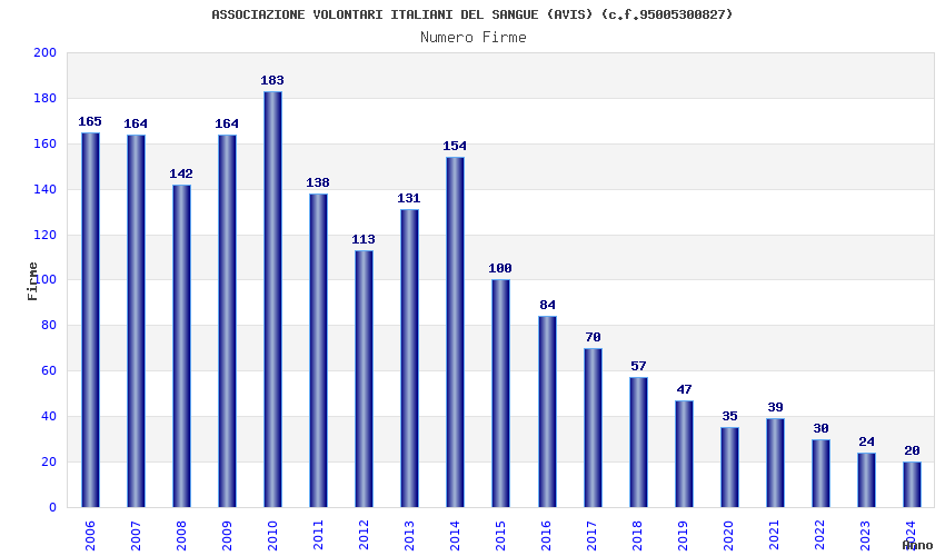 | Anno | Firme | Importi | Media | Naz. | Reg. | Prov. | Comu. |